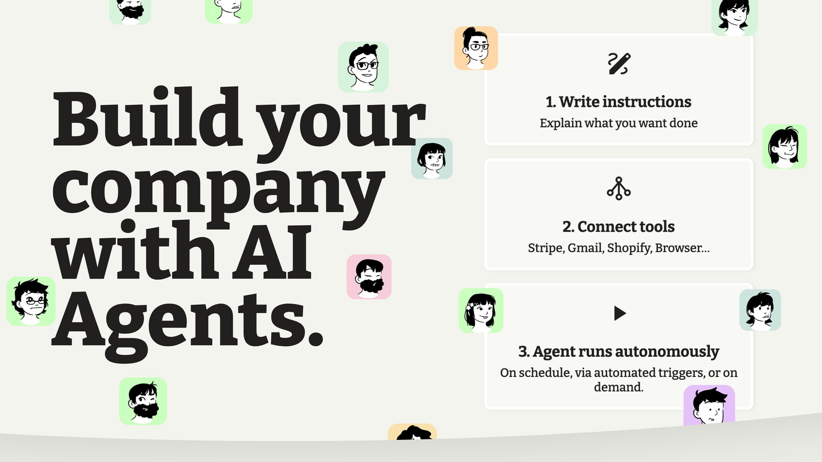 Descrição da ferramenta: a.genti.ca é uma plataforma que permite aos fundadores gerenciar suas empresas usando agentes de IA, automatizando tarefas complexas e multi-step através de comandos em inglês simples, sem necessidade de programação ou criação de fluxos.