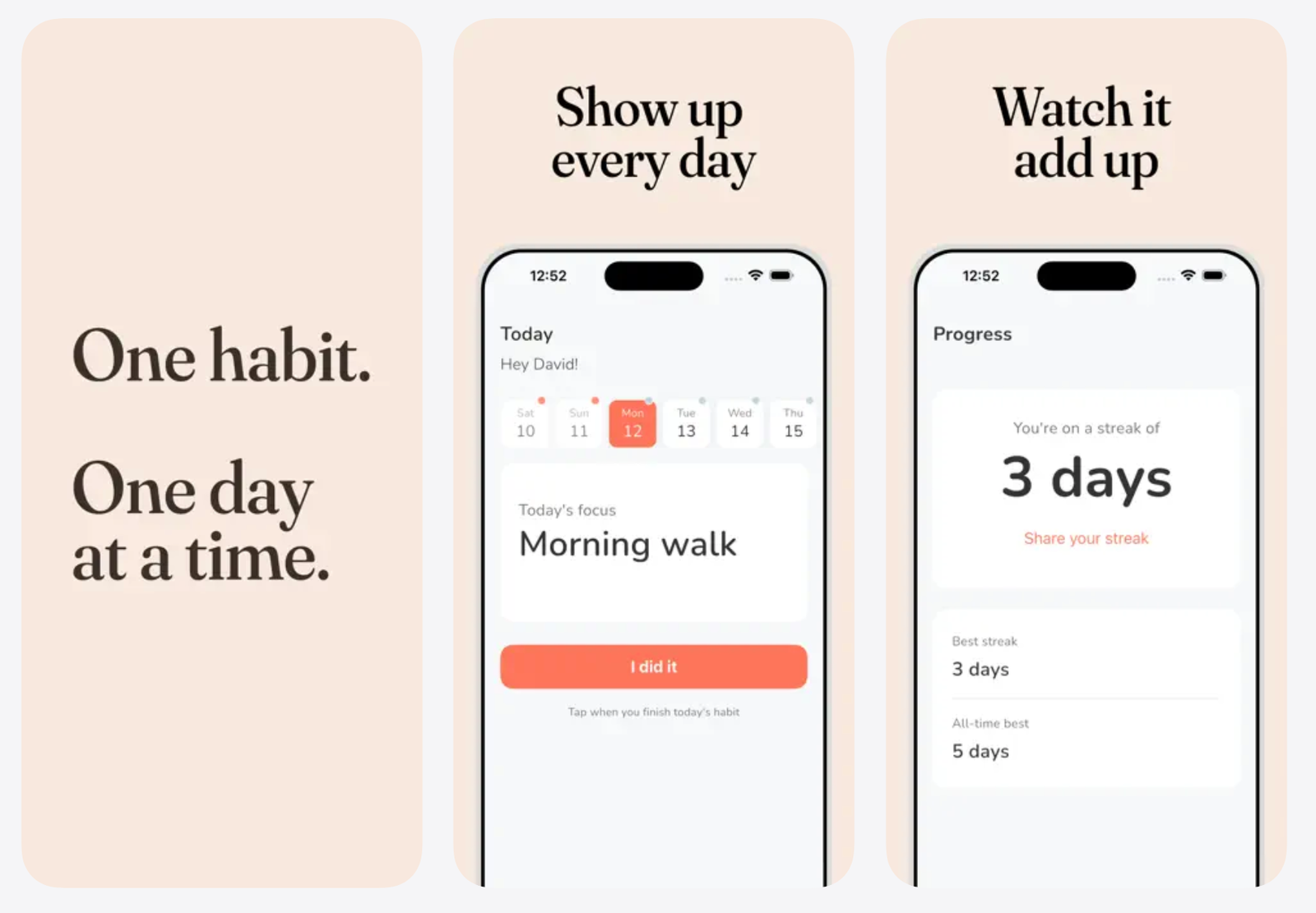 📝 Foco em um hábito: Permite acompanhar apenas uma rotina por vez, facilitando o comprometimento.