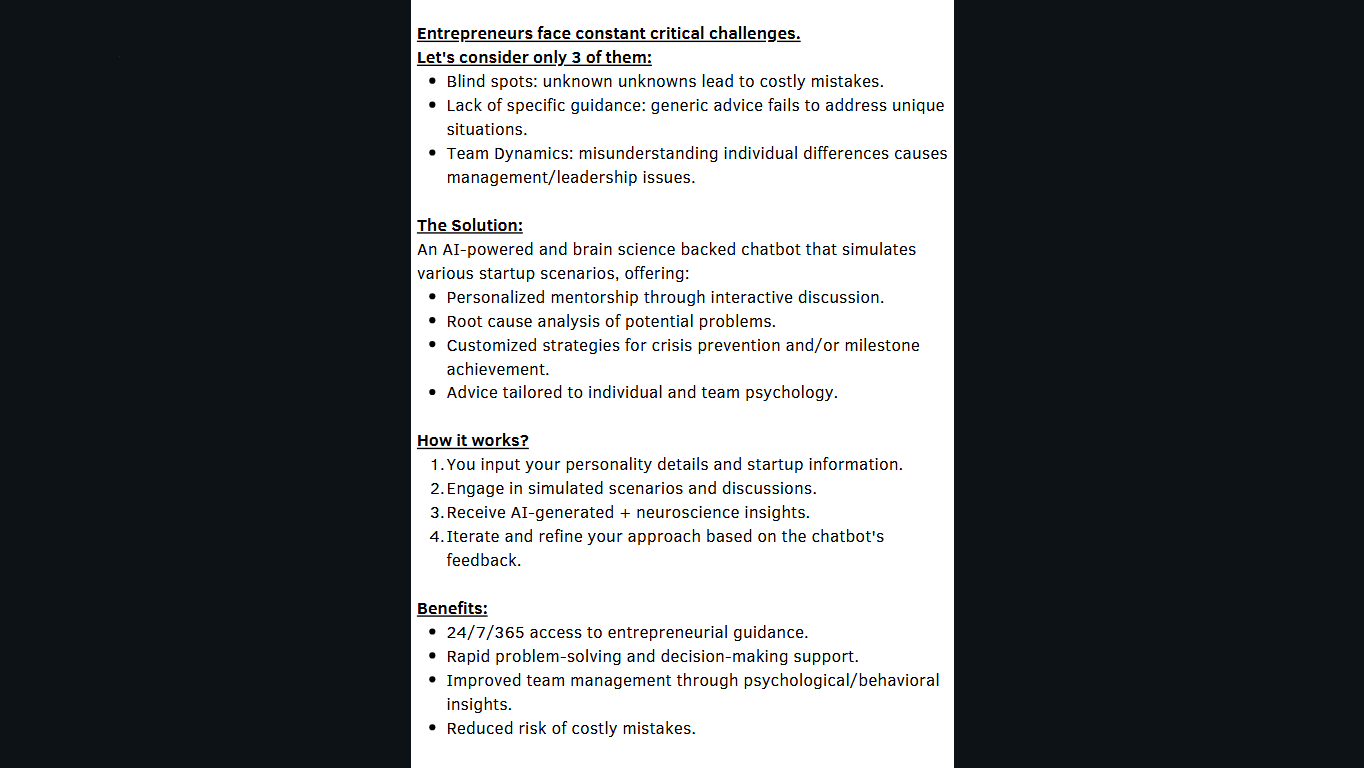 Descrição da ferramenta: Este modelo de IA oferece simulações personalizadas para empreendedores, permitindo a análise de cenários específicos de startups. Com ele, é possível testar estratégias e avaliar resultados antes de alocar recursos, facilitando a tomada de decisões em ambientes incertos.