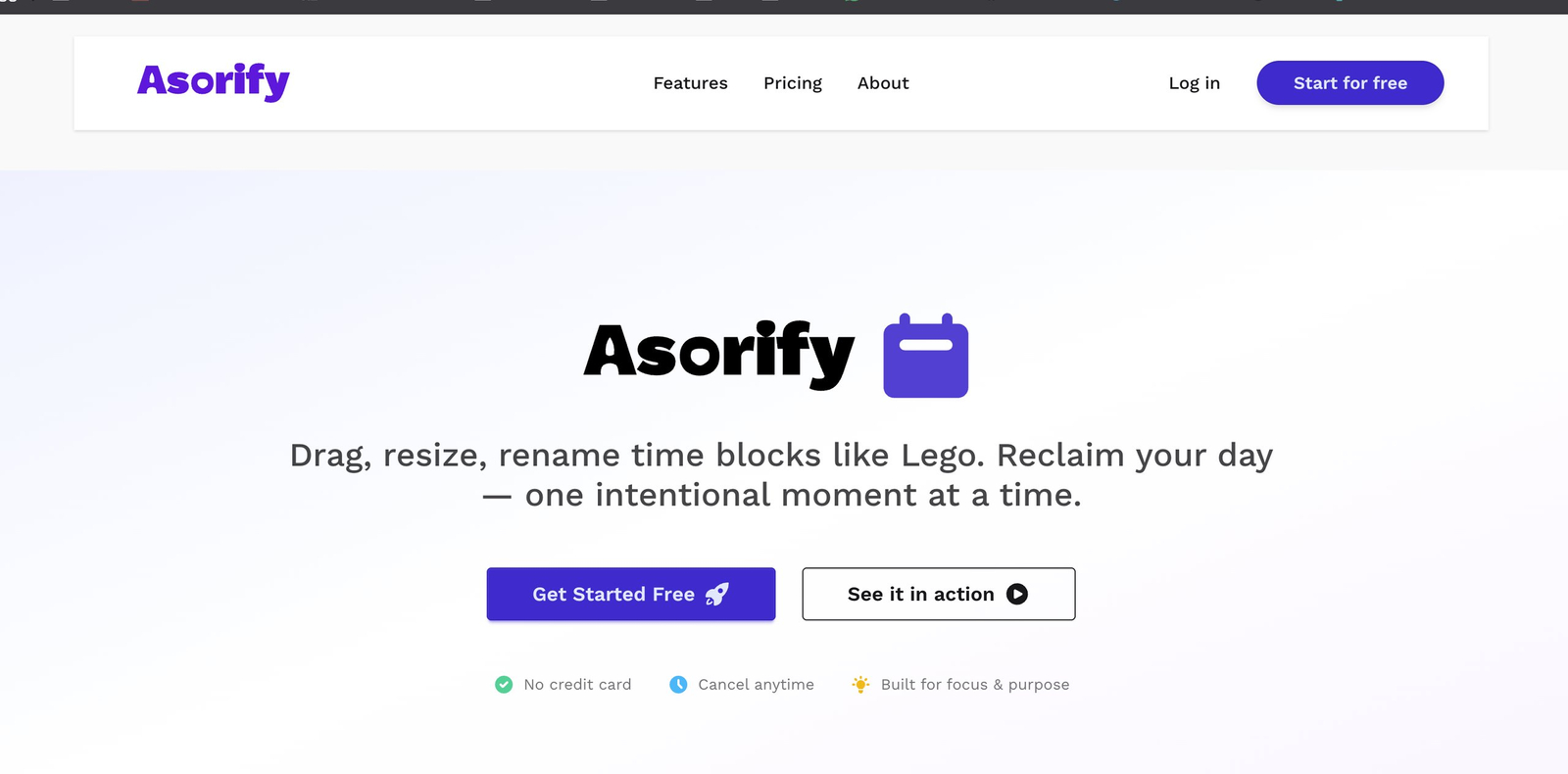 Asorify é uma ferramenta de calendário intuitiva que permite gerenciar blocos de tempo com facilidade, arrastando, redimensionando e renomeando tarefas para otimizar a rotina diária.