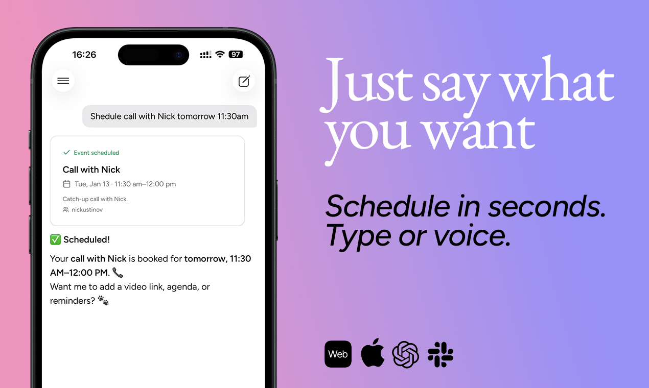 💬 Processamento de Linguagem Natural: Permite agendar e modificar reuniões por comandos simples em linguagem natural.