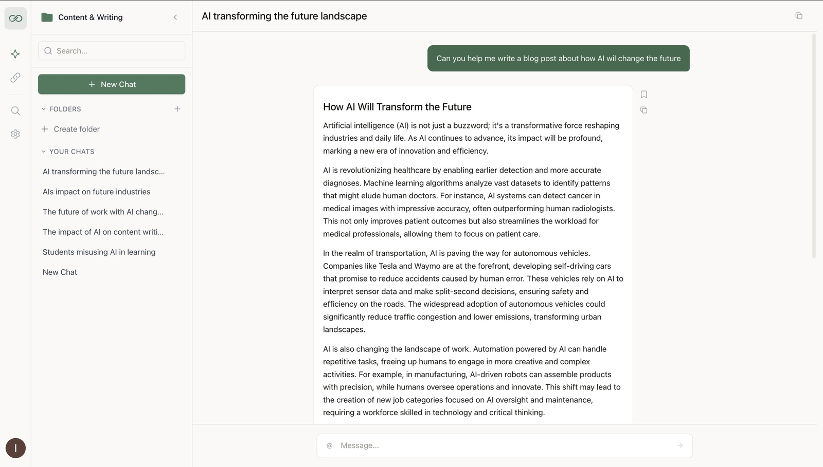 🎯 Padrões de Redação: Criar templates para ensaios ou relatórios que podem ser aplicados automaticamente em novos chats.