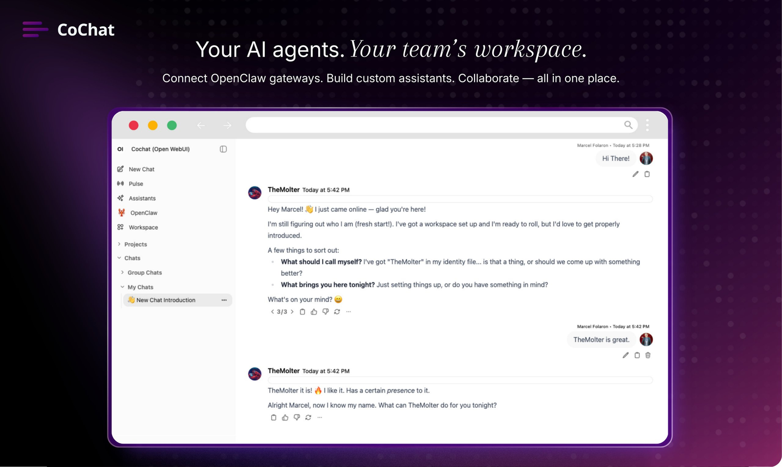 💼 Colaboração empresarial: Equipes utilizam CoChat para coordenar projetos com suporte de agentes IA integrados ao fluxo de trabalho.