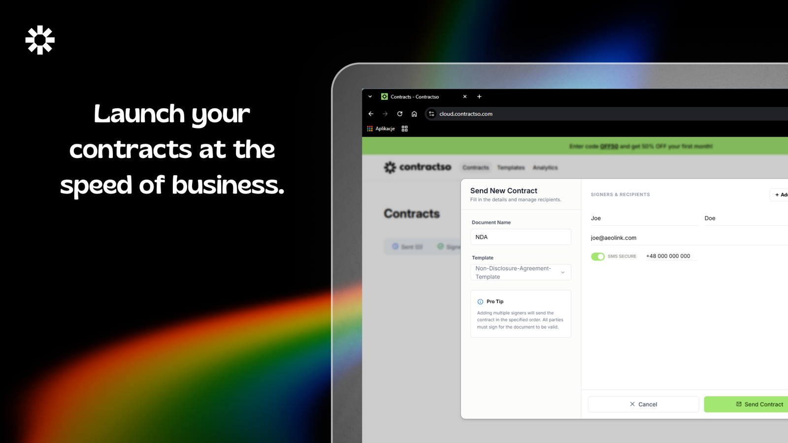 Descrição da ferramenta: Contractso é uma plataforma de assinatura eletrônica de última geração, que transforma documentos estáticos em contratos interativos, garantindo segurança jurídica com trilha de auditoria e autenticação por QR code criptográfico.