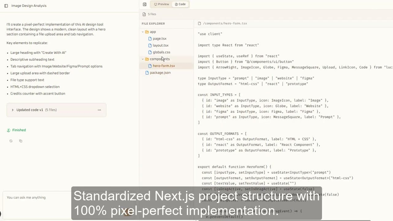 🛠️ Geração de Código: Produz código frontend limpo e pronto para produção a partir de layouts existentes.