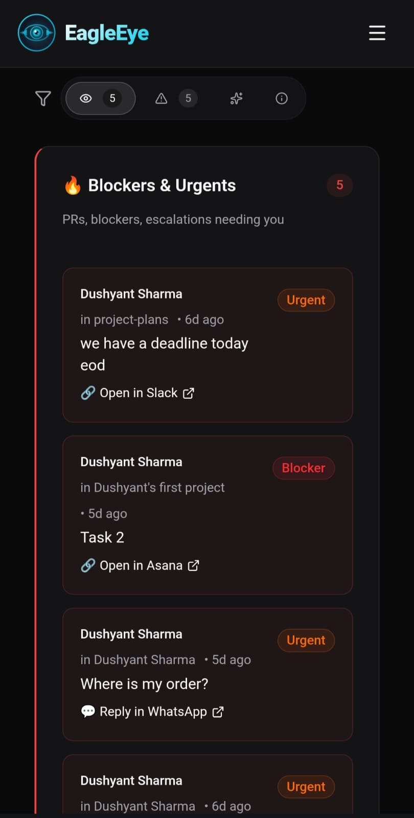 💼 Gestão de equipes: Líderes utilizam EagleEye para monitorar apenas as mensagens críticas do time, evitando distrações constantes.