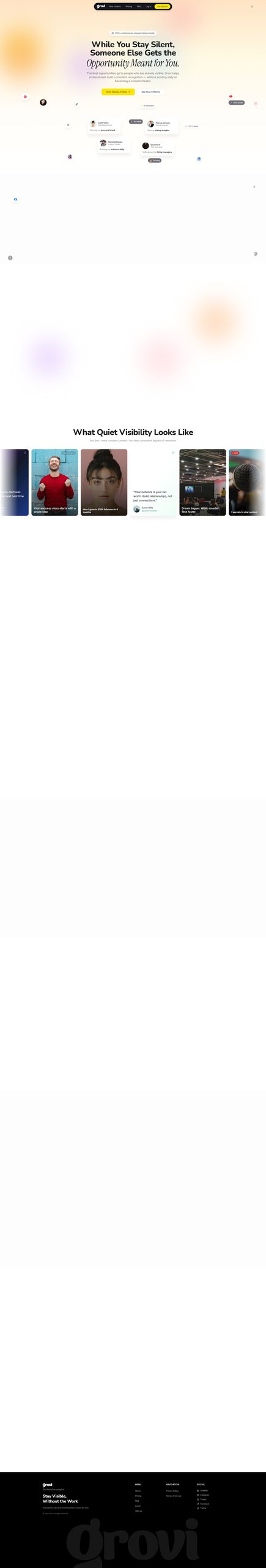 🌐 Crescimento de marca pessoal: Profissionais usam Grovi para manter sua presença online ativa e consistente.