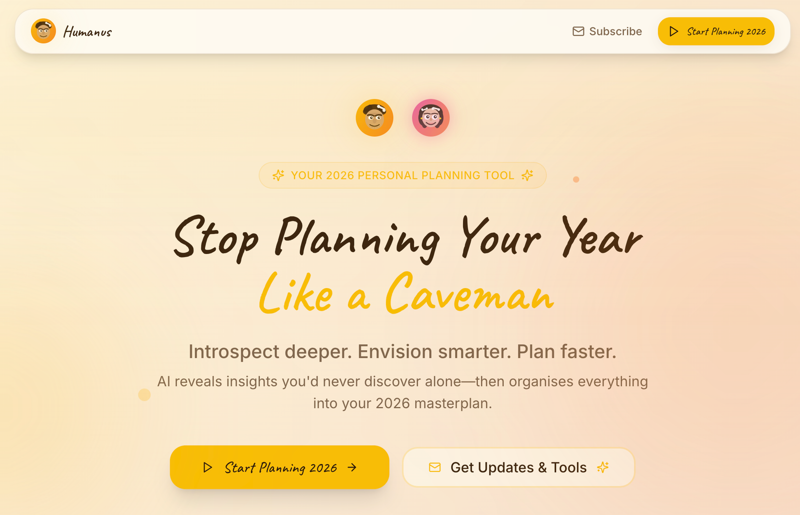 Descrição da ferramenta: Humanus é uma ferramenta de planejamento pessoal que utiliza inteligência artificial para promover introspecção, identificar padrões e explorar múltiplos futuros, oferecendo um planejamento contextualizado e significativo para o usuário.