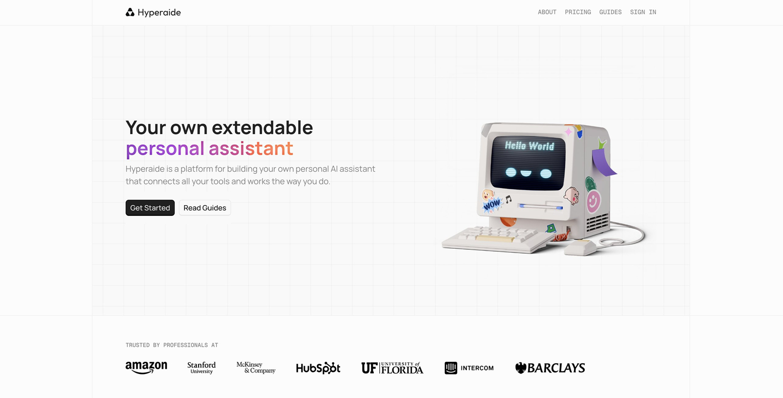 Descrição da ferramenta: Hyperaide é uma plataforma que permite criar assistentes pessoais de IA personalizados, integrando-se a aplicativos como WhatsApp, Telegram, email e web para automatizar tarefas e adaptar-se ao estilo do usuário.