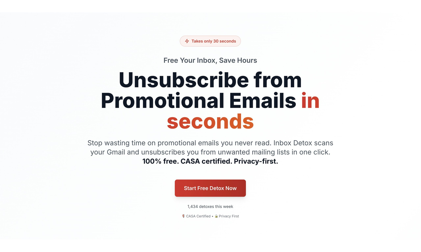 Descrição da ferramenta: Inbox Detox é uma ferramenta gratuita que utiliza inteligência artificial para identificar e cancelar assinaturas de emails promocionais indesejados, otimizando a gestão da caixa de entrada de forma rápida e segura.