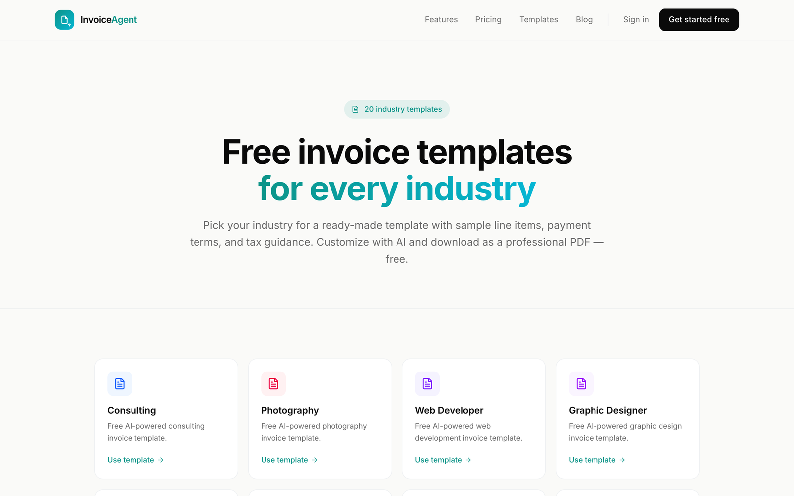 Descrição da ferramenta: InvoiceAgent converte descrições em inglês simples em faturas profissionais, automatiza o envio e cobrança, e permite download gratuito do PDF, sem necessidade de cadastro. Ideal para agilizar processos de faturamento e recebimento.