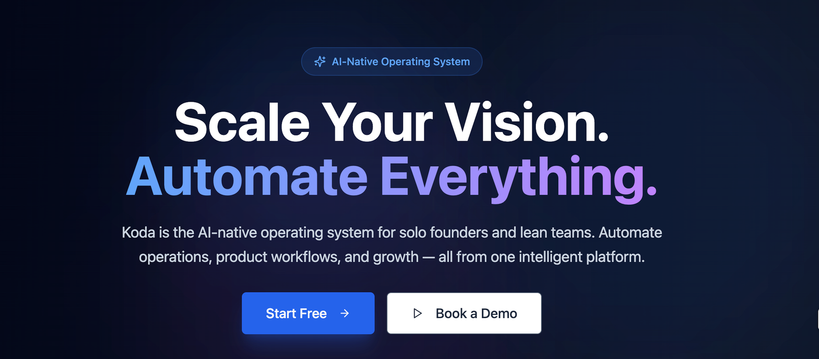 Descrição da ferramenta: Koda OS é um sistema operacional nativo de inteligência artificial que permite a empreendedores individuais e pequenas equipes gerenciar seus negócios com agentes autônomos, fluxos de trabalho automatizados, gráficos de conhecimento autoatualizáveis e análises em tempo real.
