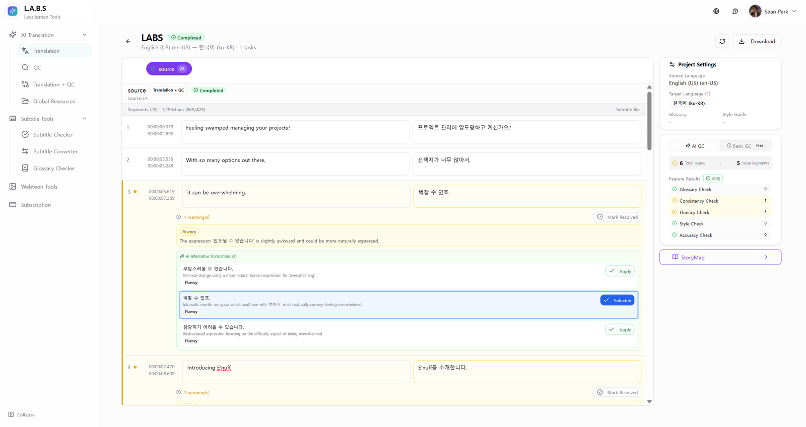 Descrição da ferramenta: LABS é uma plataforma de trabalho com inteligência artificial que oferece suporte a tradutores, equipes de LSPs e organizações de localização, incluindo tradução automática, controle de qualidade, gerenciamento de glossários e ferramentas específicas para legendas e webtoons.