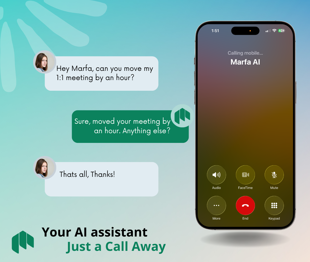Descrição da ferramenta: Marfa é um assistente de IA nativo de voz, projetado para facilitar tarefas em movimento, como captura de notas, organização de tarefas, buscas na web e gerenciamento de eventos por meio de chamadas telefônicas.