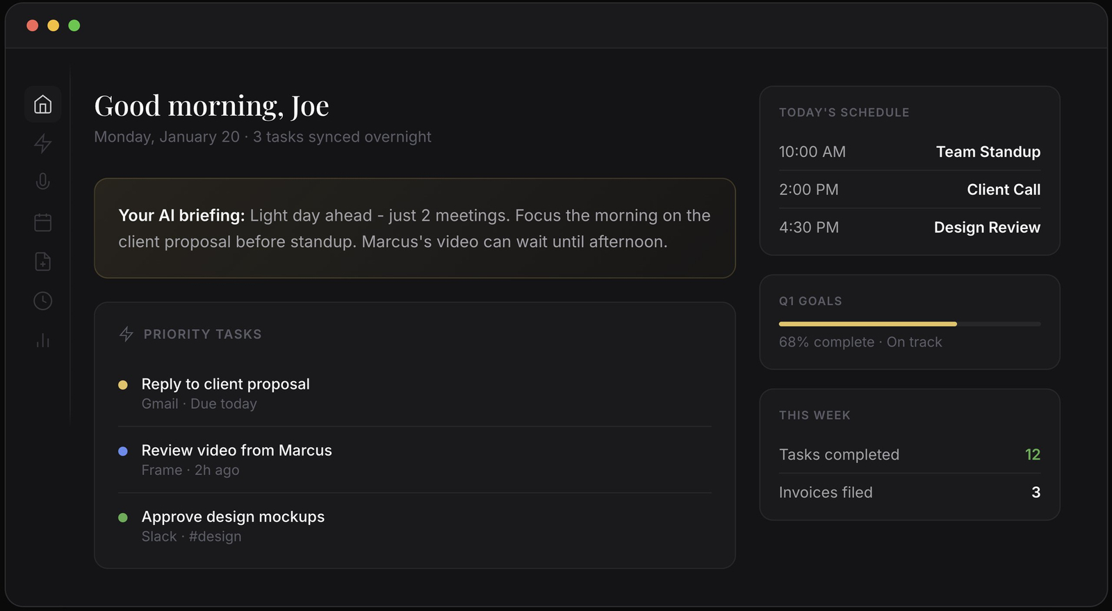 🔄 Sincronização Automática: Atualiza dados de diversas fontes como Slack, email e calendário durante a noite.