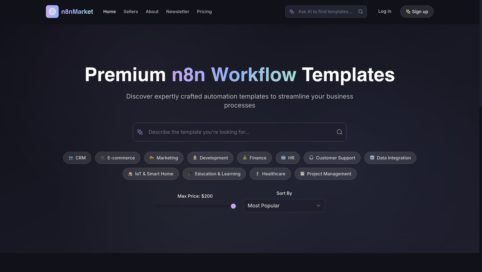 Descrição da ferramenta: Plataforma que oferece templates de automação premium para n8n, permitindo que criadores e empresas economizem tempo, escalem seus processos e mantenham 100% dos lucros, sem comissão.