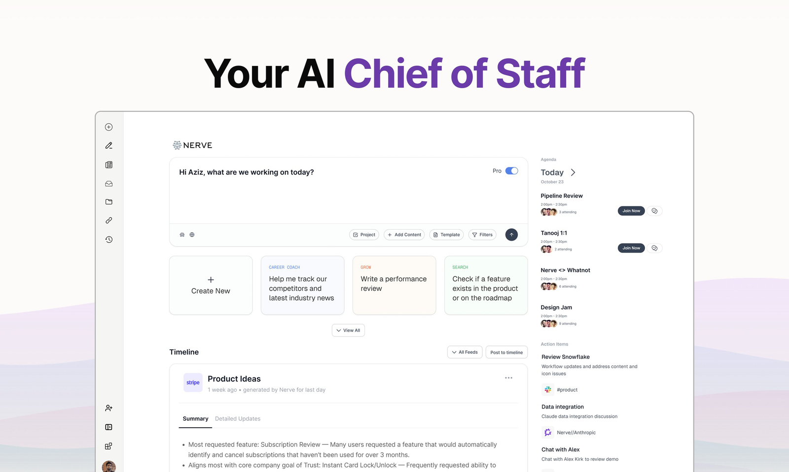 Descrição da ferramenta: Nerve é uma plataforma de automação que integra aplicativos, busca conteúdo interno e automatiza fluxos de trabalho, facilitando tarefas como elaboração de documentos, atualização de CRM, criação de tickets e respostas a e-mails, promovendo maior eficiência operacional.