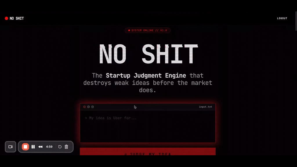 Descrição da ferramenta: No Shit é uma plataforma que avalia ideias de startups de forma direta, oferecendo orientações objetivas de uma equipe virtual especializada, facilitando a tomada de decisão rápida e eficiente.