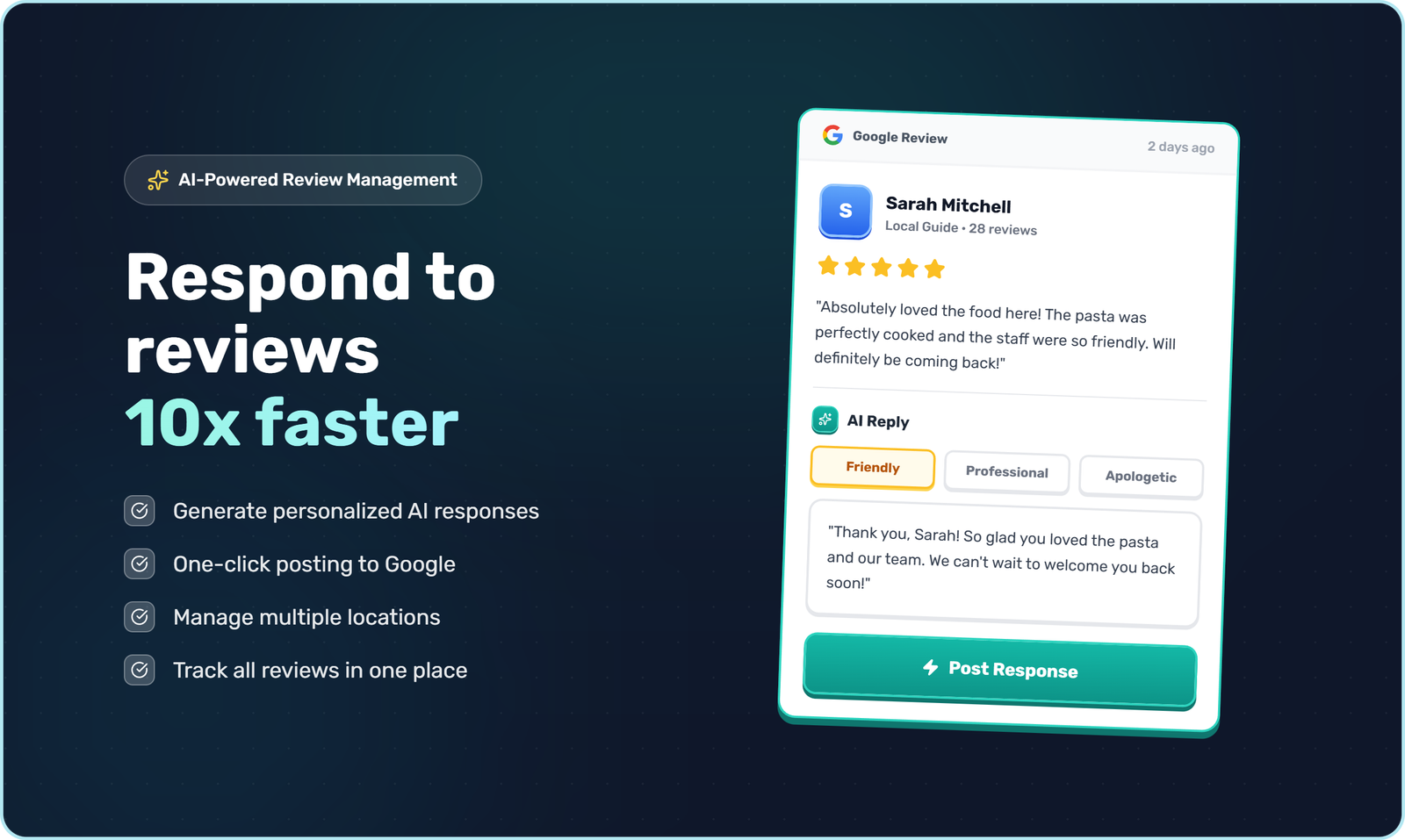 🌐 Integração com Google Business Profile: Posta automaticamente as respostas diretamente na plataforma do Google.