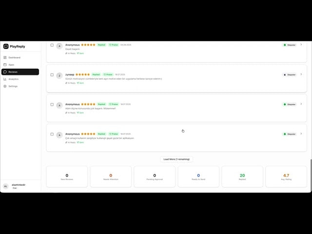 Descrição da ferramenta: PlayReply é uma ferramenta de inteligência artificial que automatiza respostas a avaliações de aplicativos na Google Play e App Store, economizando tempo ao gerar respostas profissionais, seguras e multilíngues para feedback dos usuários.