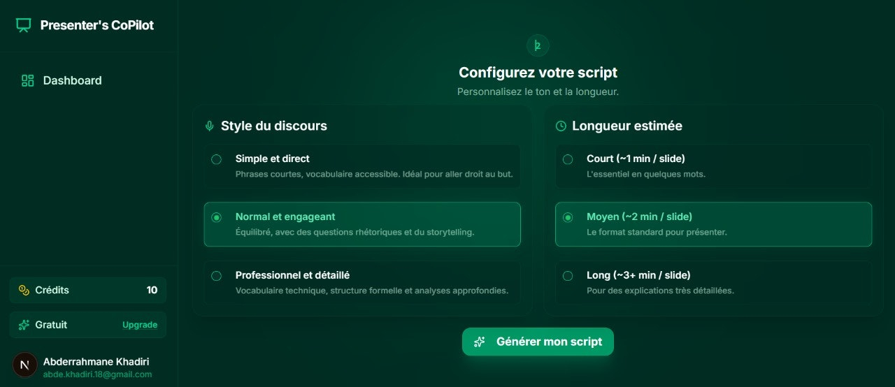 🎯 Precisão no Tempo: Permite ajustar o discurso para durar exatamente 1, 2 ou mais minutos por slide.
