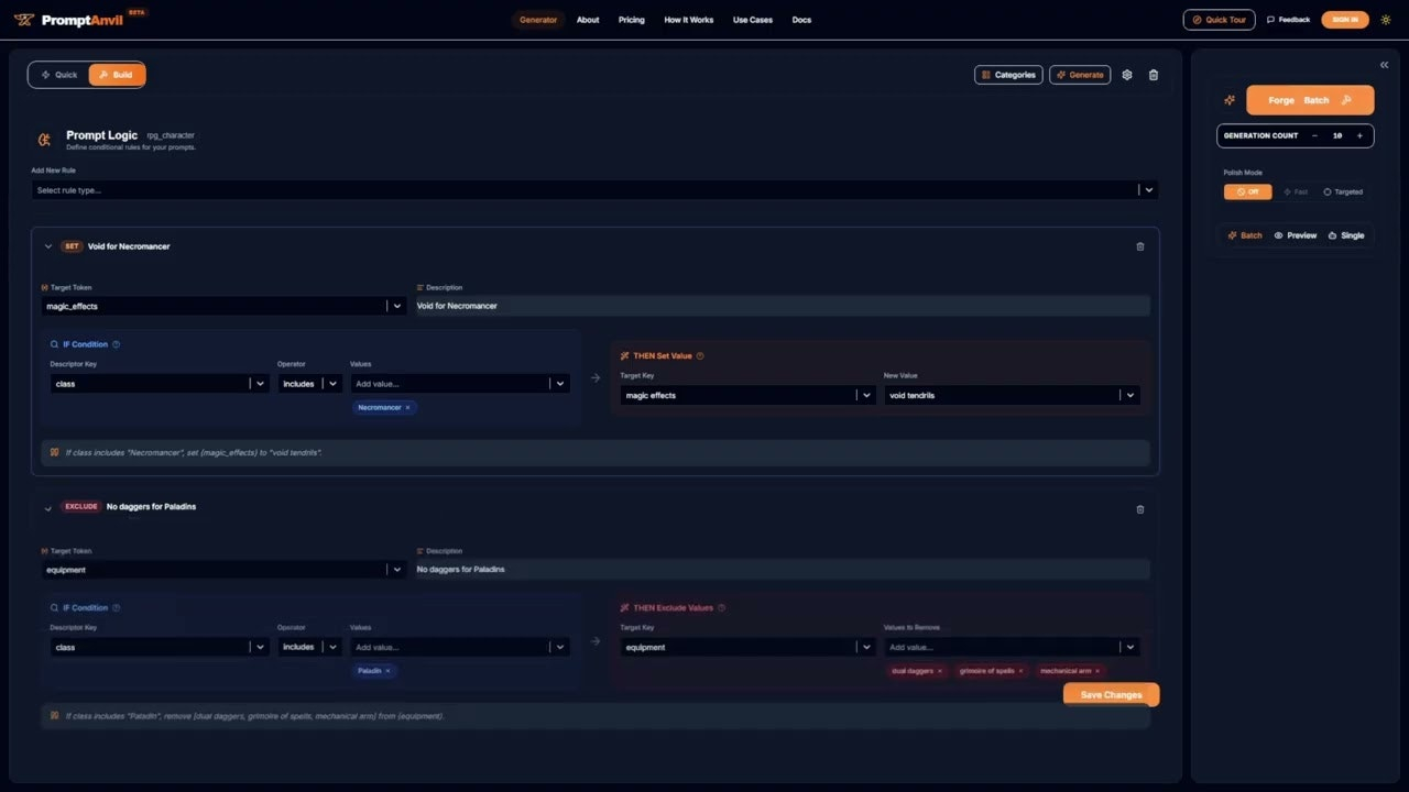 🧩 Lógica Condicional: Regras IF/THEN para evitar contradições na geração dos prompts.