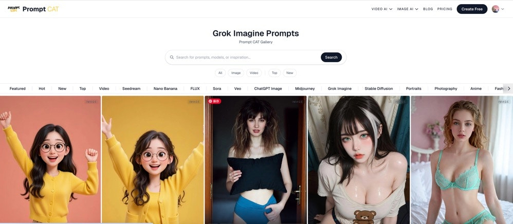 Descrição da ferramenta: PromptCAT é uma plataforma especializada em prompts de inteligência artificial para geração de imagens e vídeos, permitindo buscas específicas como Nano Banana, Grok e Gemini, além de oferecer um gerador gratuito de conteúdo visual com IA.