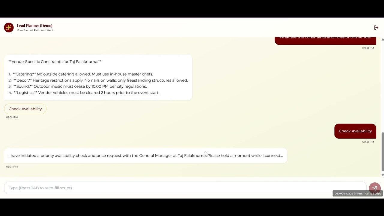 🌐 Integração Cultural: Oferece suporte específico para casamentos Telugu, Tamil e Fusion, respeitando tradições locais.
