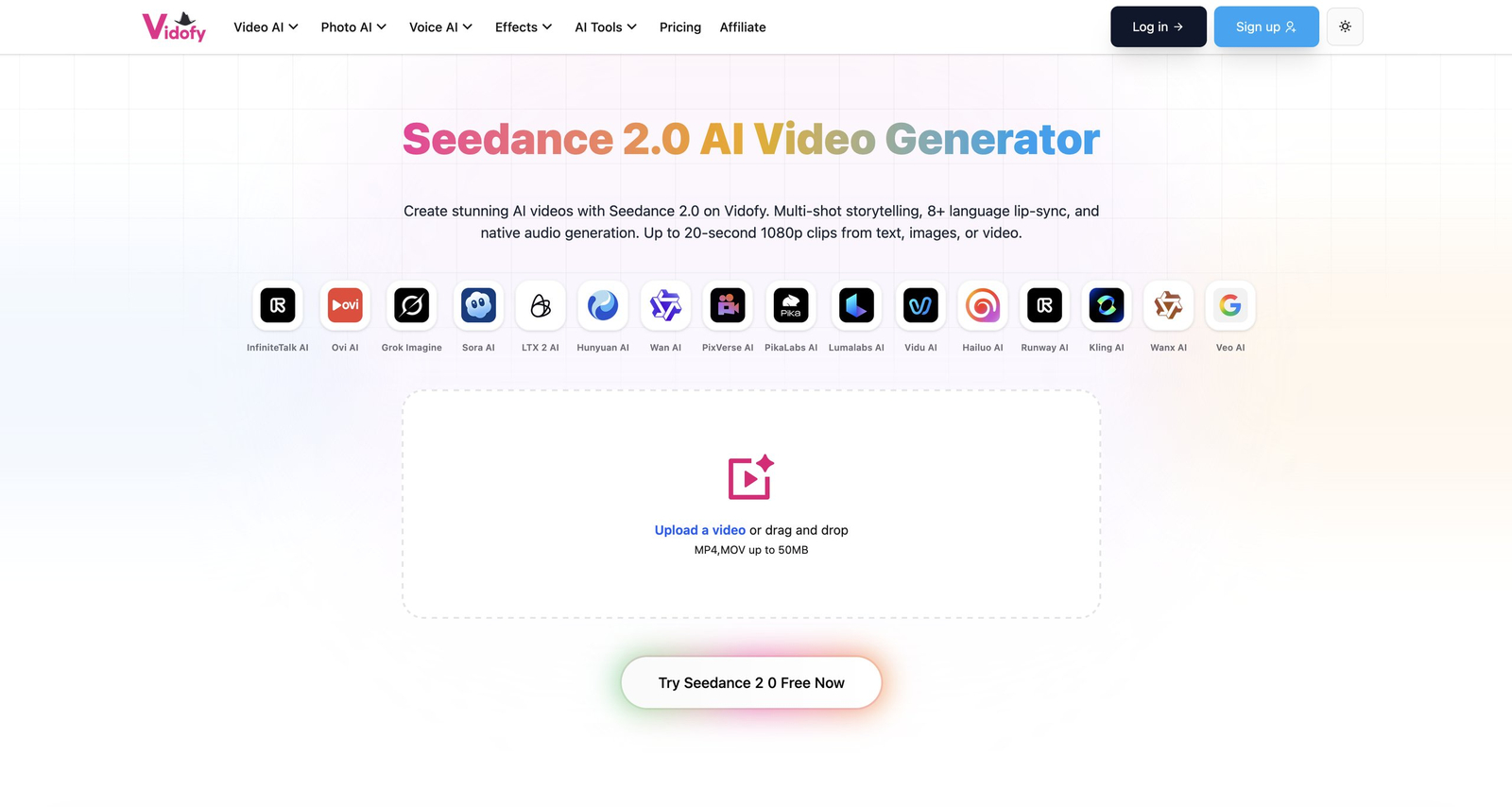 Descrição da ferramenta: Seedance 2.0 Cinematic AI Video é uma plataforma multimodal que gera vídeos a partir de texto, imagens, áudio e vídeos de referência, permitindo controle de estilo, movimentos de câmera e ações para produção rápida e consistente.