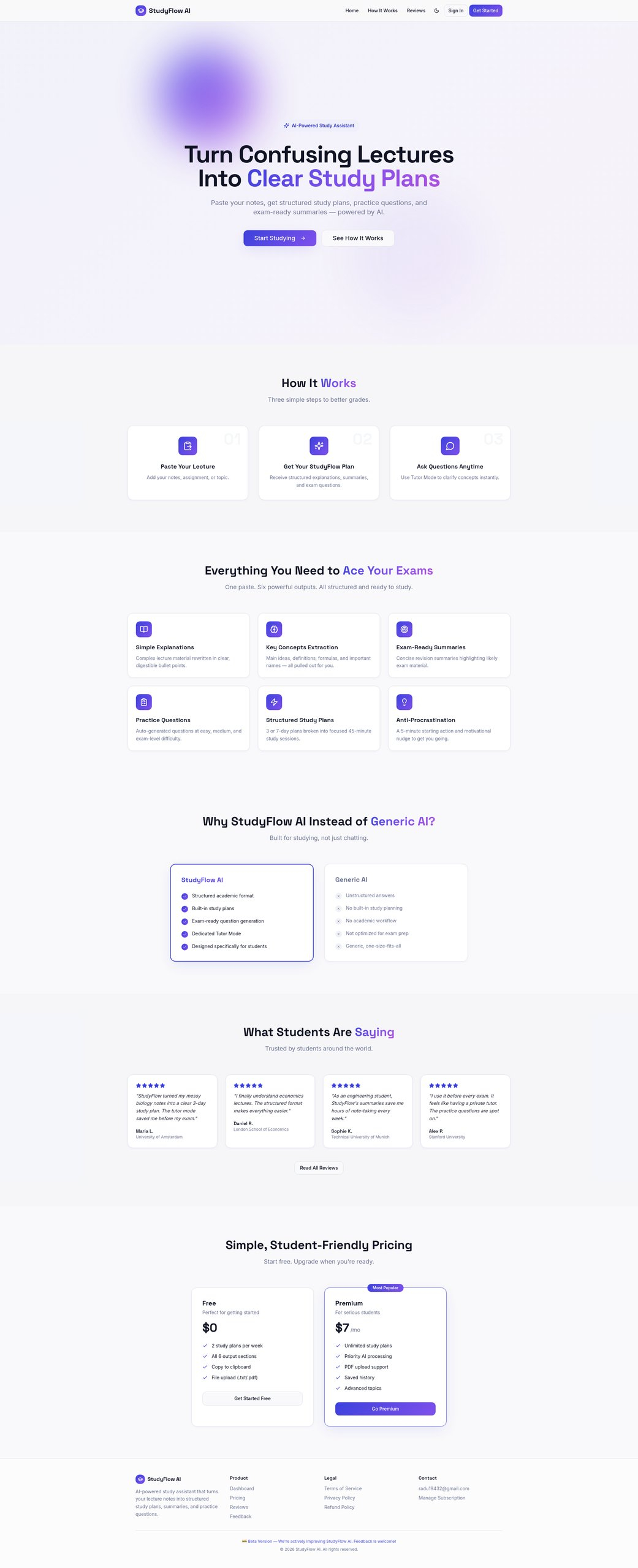O StudyFlow AI-new é uma plataforma baseada em inteligência artificial que gera planos de estudo personalizados em segundos, considerando a data do exame, horas disponíveis e objetivos do usuário, otimizando o tempo dedicado ao estudo.