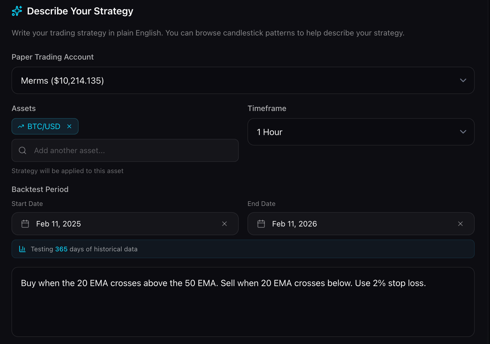 📝 Criar estratégias personalizadas: Desenvolver bots baseados em regras específicas usando comandos em linguagem natural.
