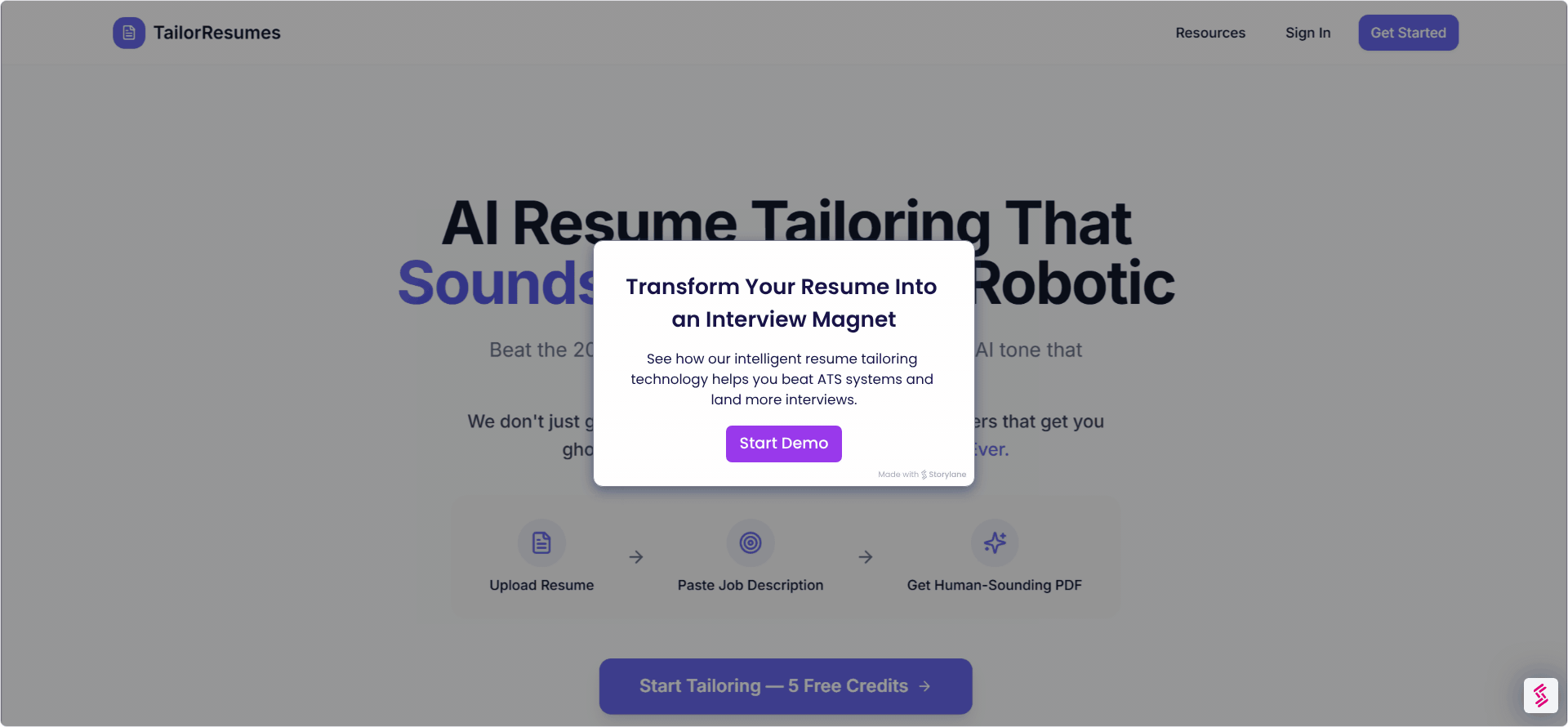 Descrição da ferramenta: TailorResumes é uma ferramenta baseada em créditos que permite personalizar currículos para ATS específicos em apenas 30 segundos, eliminando assinaturas mensais e oferecendo ajustes rápidos e precisos.