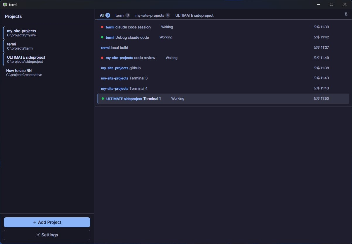 Descrição da ferramenta: Termi monitora sessões do Windows Terminal com Claude Code, enviando notificações nativas ao detectar ociosidade, facilitando o gerenciamento de múltiplas tarefas simultâneas com integração rápida e suporte a temas e idiomas variados.
