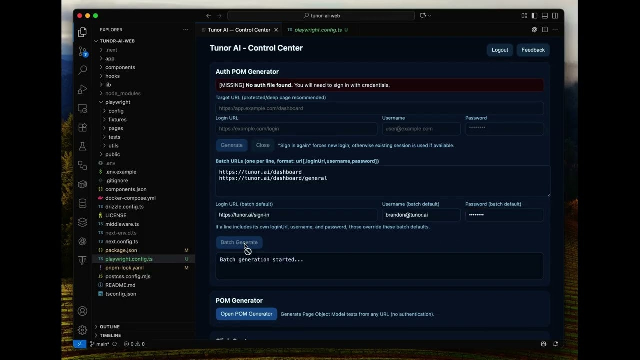 Tunor AI é uma extensão gratuita para VS Code que automatiza a geração de testes end-to-end com Playwright, oferecendo seletores estáveis, POMs reutilizáveis e gerenciamento de login integrado, acelerando o desenvolvimento e garantindo maior confiabilidade nos testes.