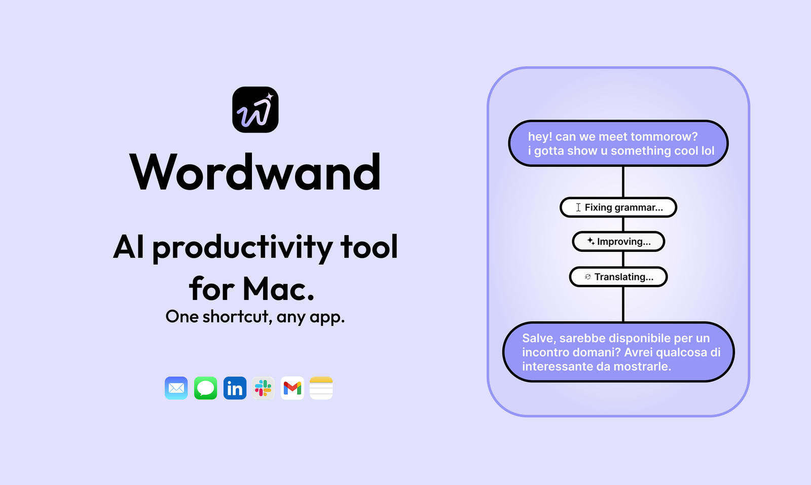 Wordwand integra inteligência artificial diretamente no ambiente de digitação, permitindo realizar perguntas, traduções, correções e comandos de voz sem sair do aplicativo ou navegador utilizado.