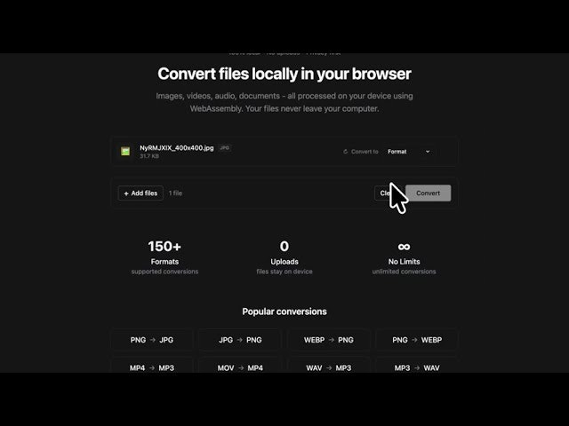 Descrição da ferramenta: Convt é uma ferramenta online que permite converter imagens, vídeos e áudios instantaneamente no navegador, suportando mais de 150 formatos. Oferece privacidade total, sem necessidade de uploads e é totalmente gratuita.